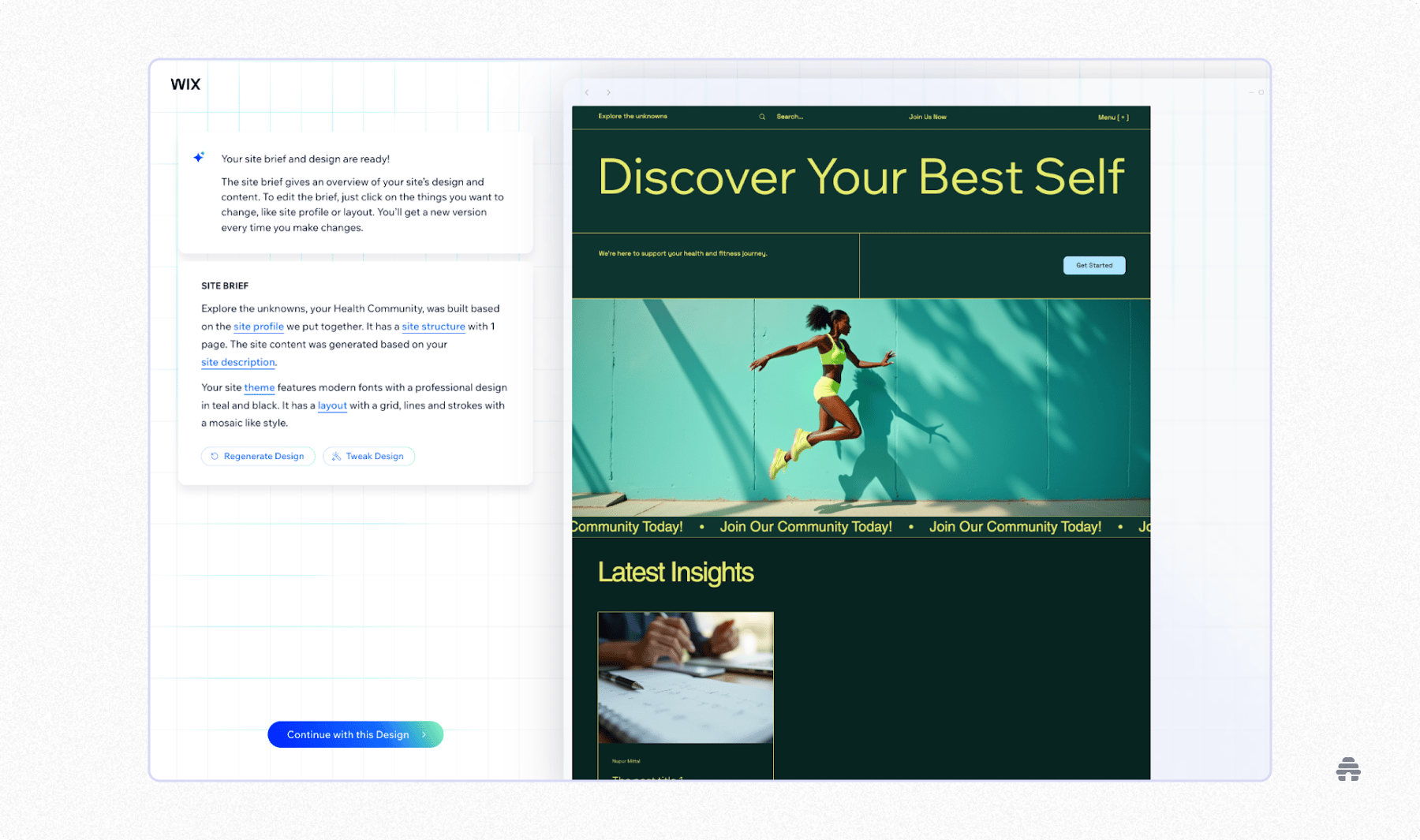 Wix’s AI asks you a bunch of questions upfront to generate an initial website design. It can create a full site from a few prompts, including color palette and tone.