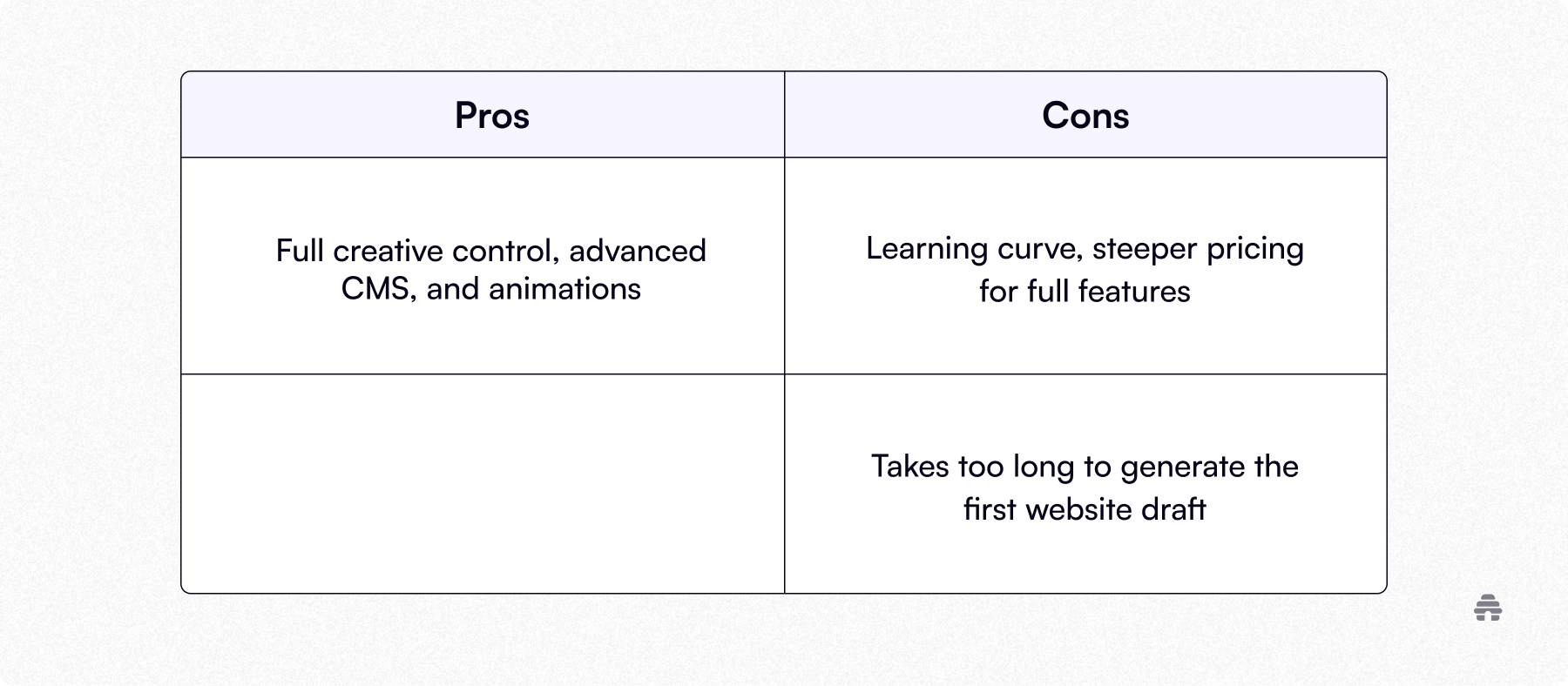 When using AI for website design, I’m not just thinking about speed. I’m also looking for a tool that generates publish-ready designs, gives me full control over the final output, and reduces the legwork for me.