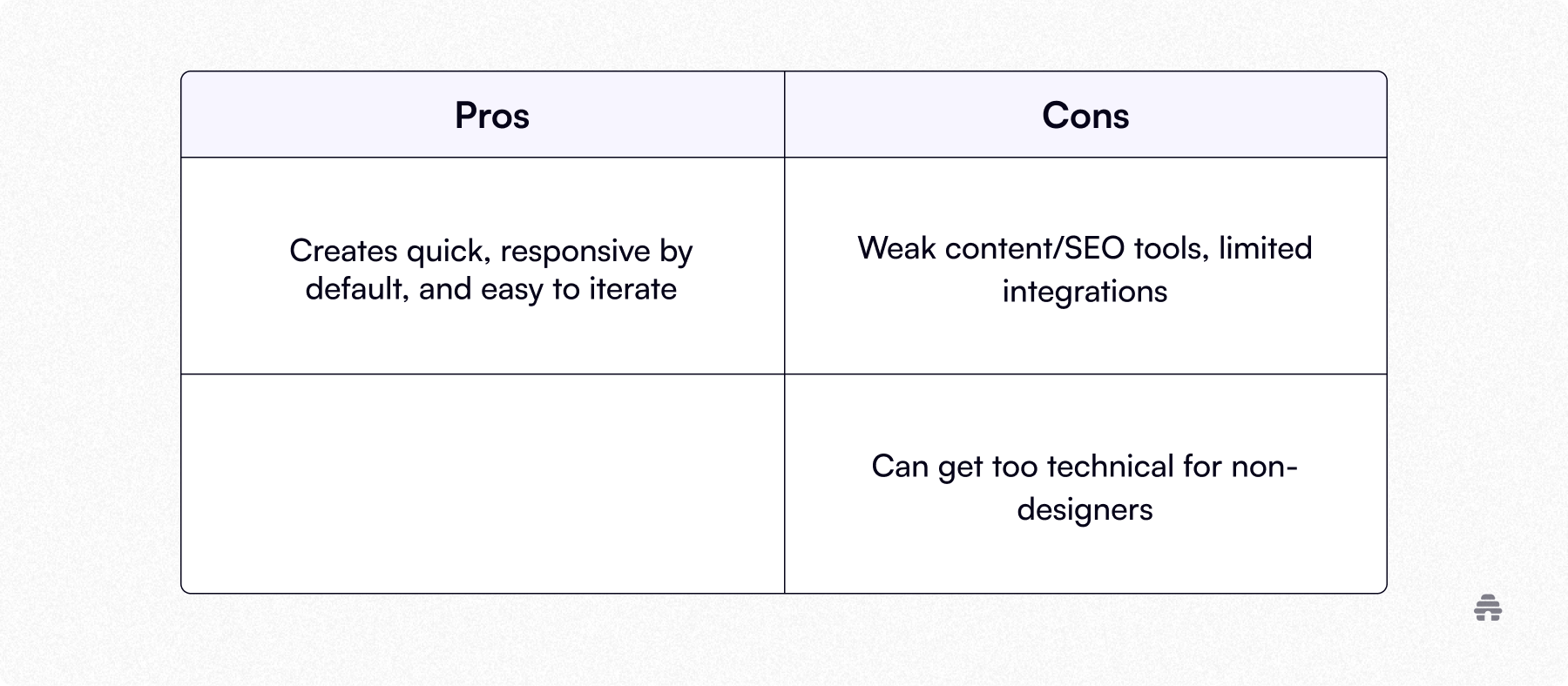It’s great for quick portfolios and basic business sites, but less ideal if you want dynamic pages or deep SEO control.