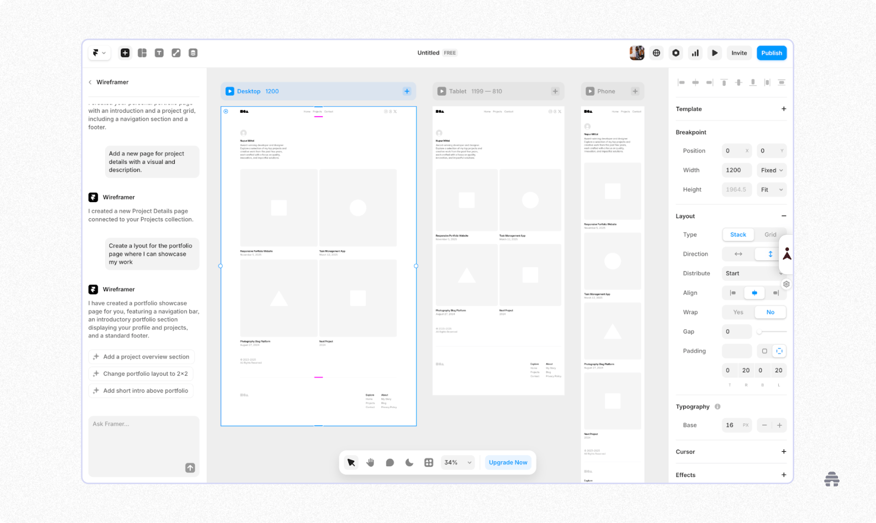 Framer’s AI, Wireframer, is a chat-based website builder that only creates the wireframes of the website, making it a great option for web design or prototyping.