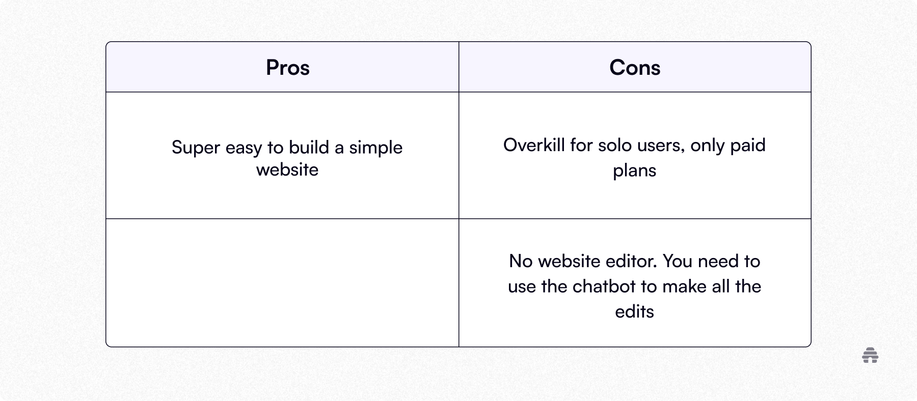 But the chatbot-based editing can quickly overwhelm you. Change the title? Ask the chatbot. Upload an image? Upload it to the chatbot and ask it to do it. Rearrange some content? Chatbot. It’s a good choice only if you want to build a simple, functional website, not a full-blown business one.