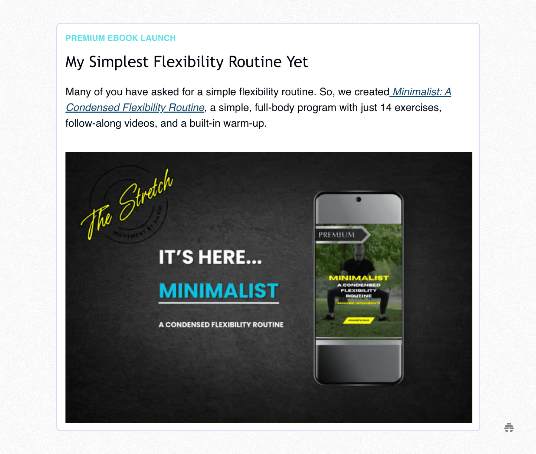 By adding a newsletter as an extension to their social media presence, he created an owned space where he could share structured routines, educational content, and deepen relationships with his most engaged followers.
