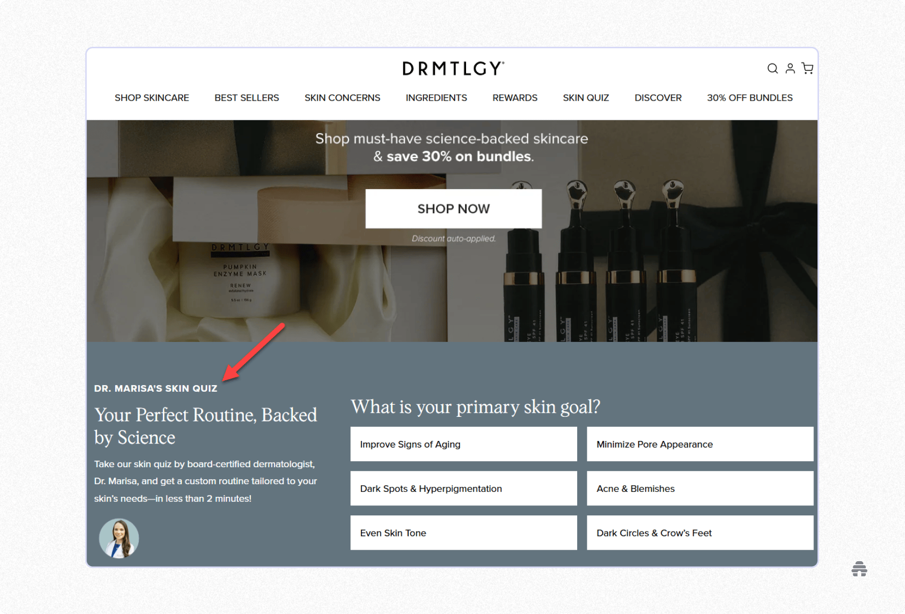 A good example is DRMTLGY, a skincare brand.