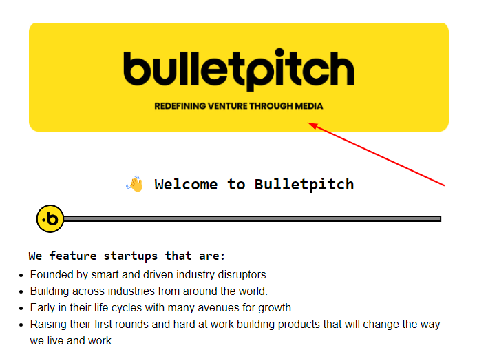 bulletpitch focuses on Generation-Z startups, covering one paradigm-breaking, high-growth success a week. In addition to the name and logo, the header includes the brand’s tagline: “discover startups shaping the next generation.”