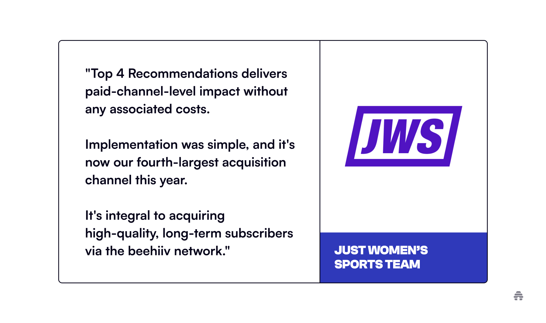 Just Women’s Sports employs a rigorous acquisition approach, where new channels must demonstrate value rapidly.