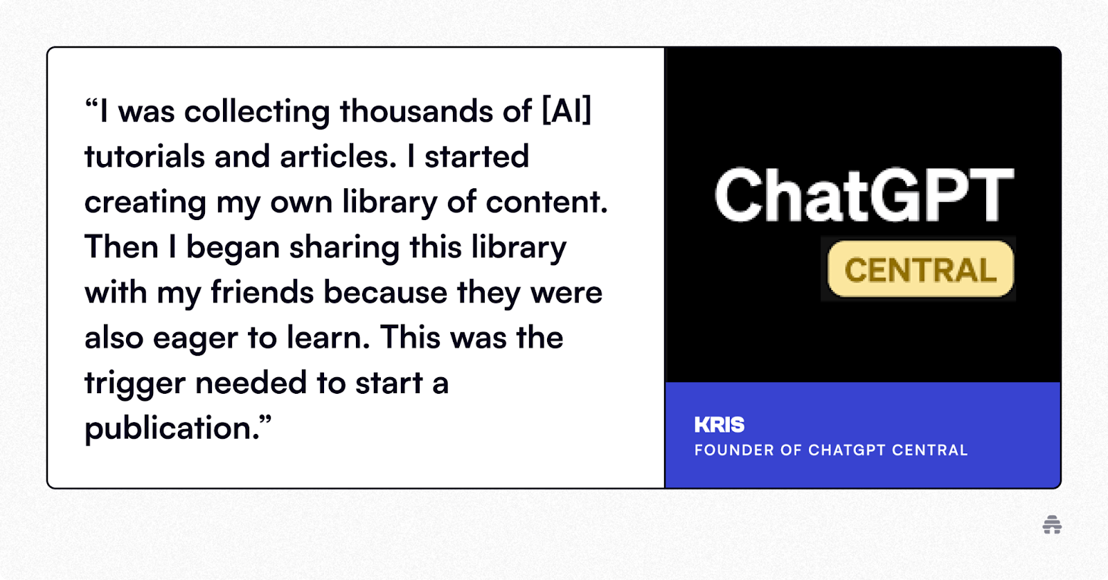 ChatGPT Central launched 20 months ago as a way to help people leverage AI with highly vetted resources, guides, tutorials, and prompts. Since then, it’s grown to over 60,000 engaged subscribers and has generated over $40,000 in revenue.