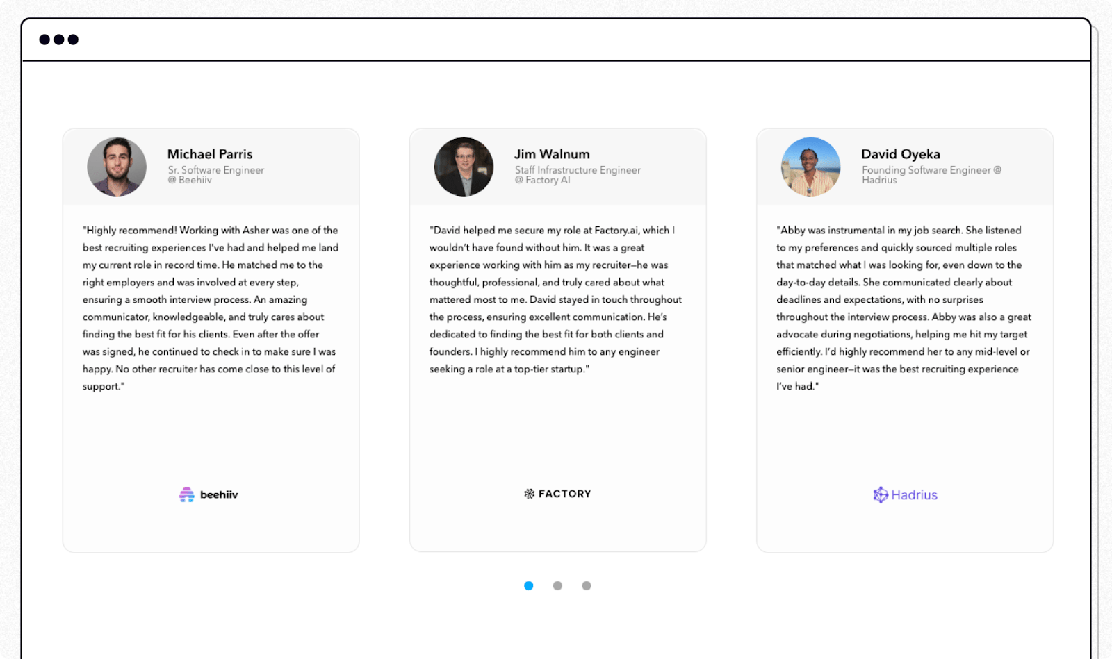 Real Stories: Showcasing candidate testimonials and success stories to inspire trust and connection.