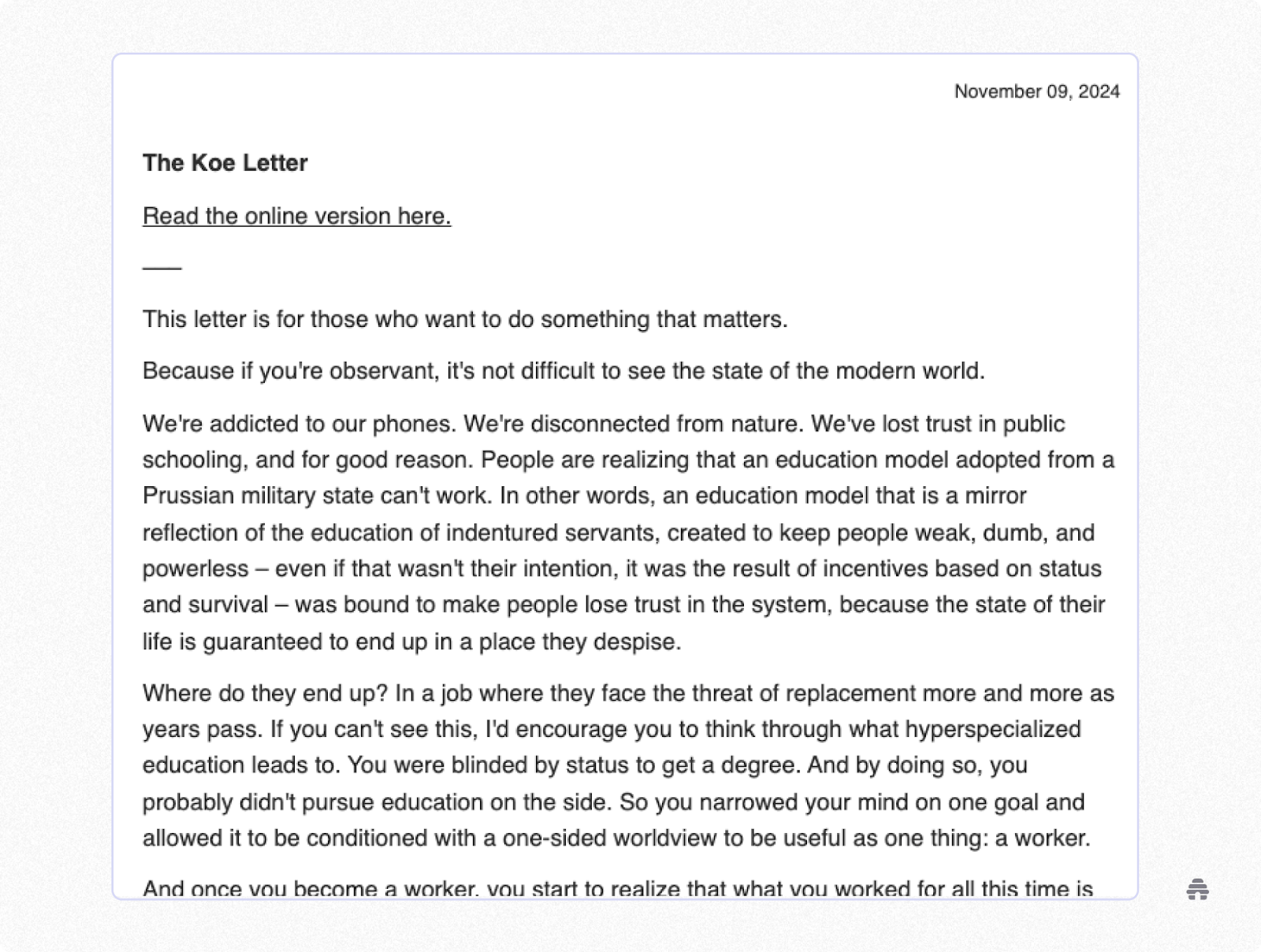 But, like anything, writing a newsletter is a learnable skill, and Koe eventually discovered it is his favorite style of writing.