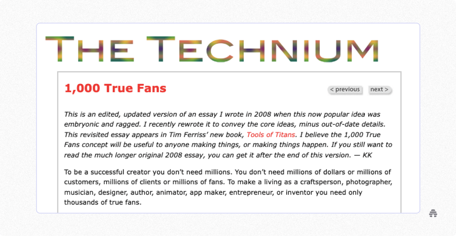 Co-founder of Wired Magazine Kevin Kelly once wrote about the concept that you don’t need millions of customers to achieve financial success in business. Instead, all you really need is 1,000 dedicated supporters, fans, or customers.