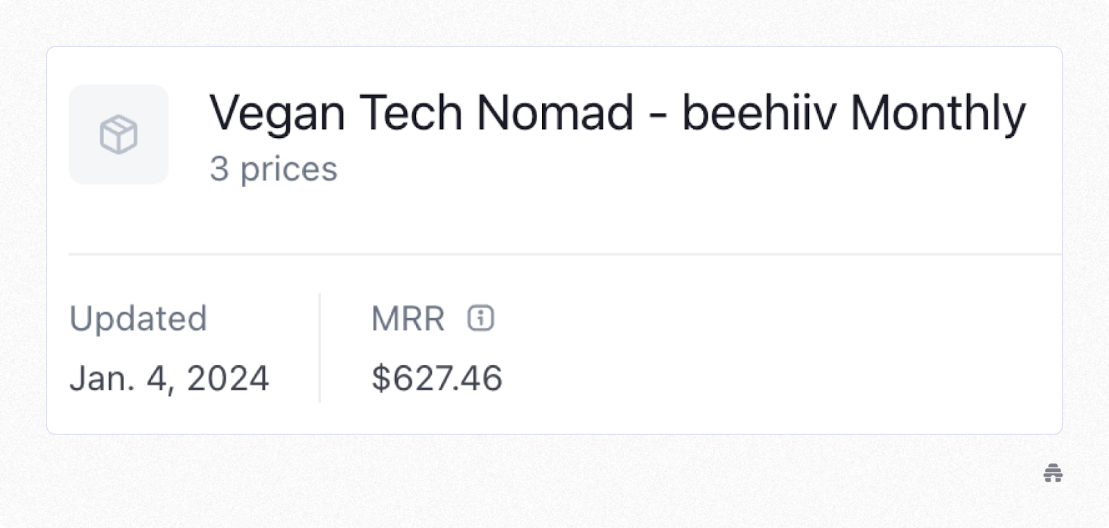 Chou spends 30-45 minutes a week writing her free newsletter and 1-1.5 hours working on her premium newsletter, where she shares more about her business including hacks and strategies that have worked for her! This generates an MRR of $627 for her.