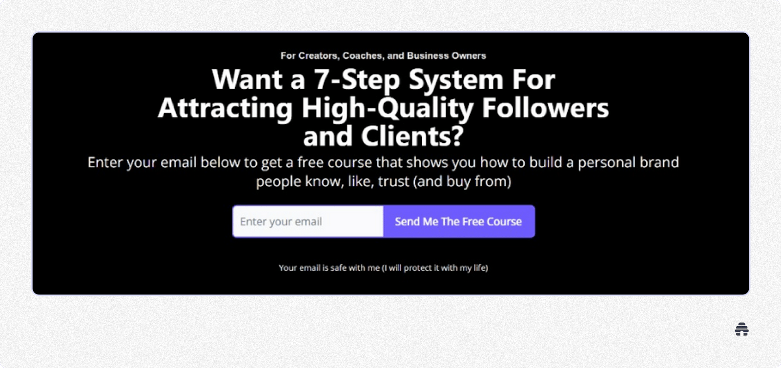 Screenshot of the copy on Justin Welsh’s newsletter sign-up page.