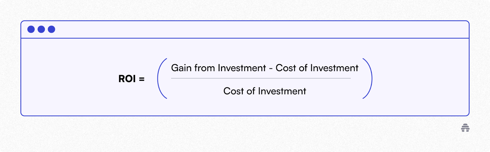 ROI = (Gain from Investment - Cost of Investment) / Cost of Investment