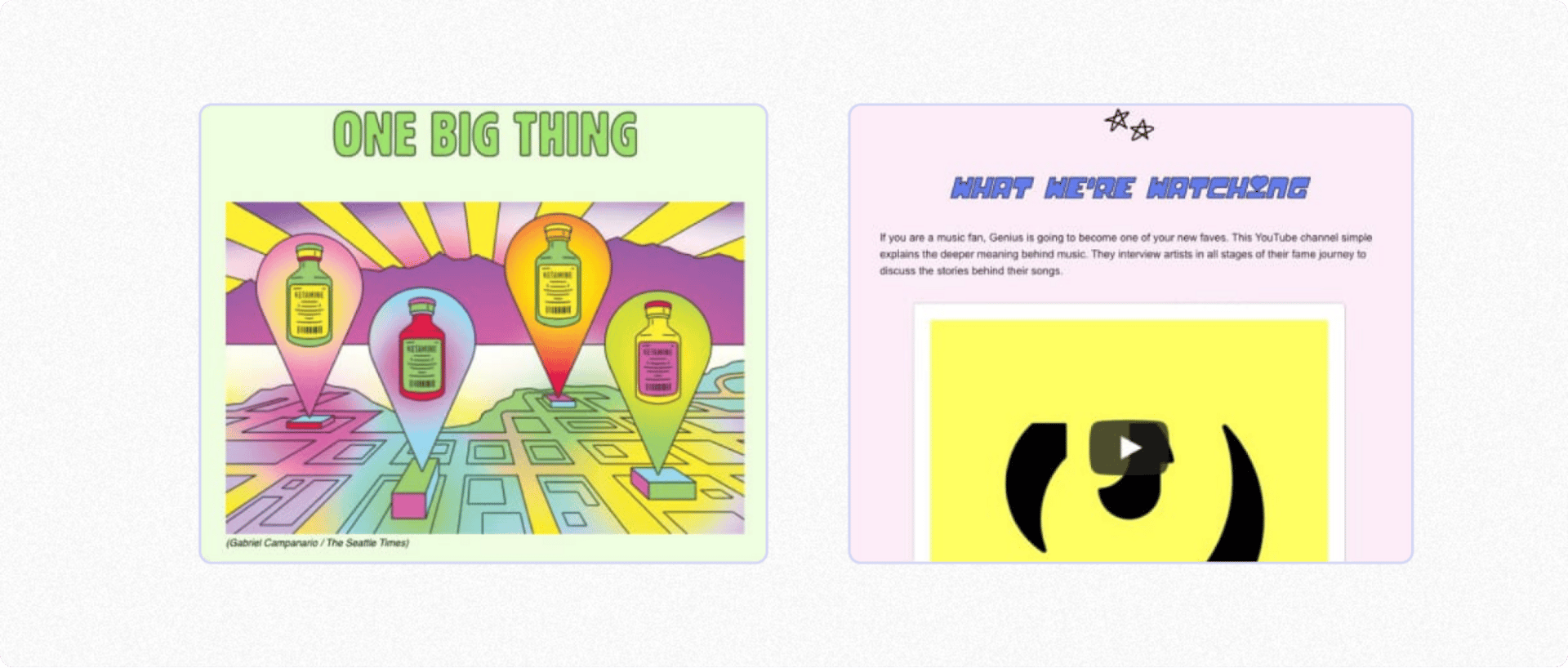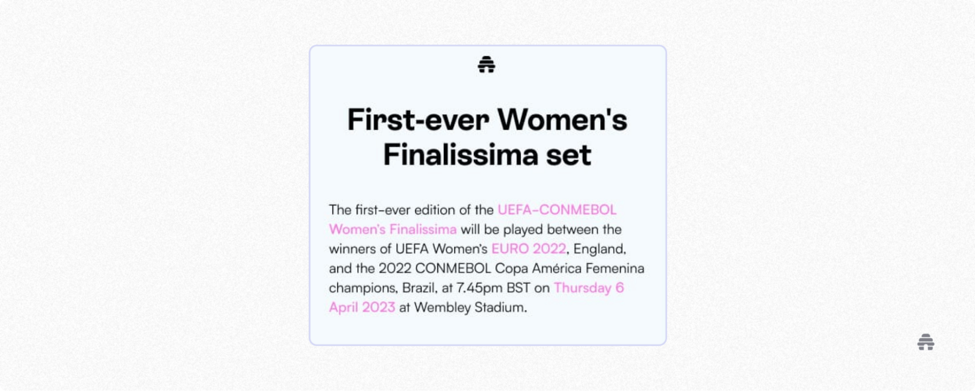 Add some dimension to your newsletter with a secondary color for accents. In the example below you can see that beehiiv uses pink.