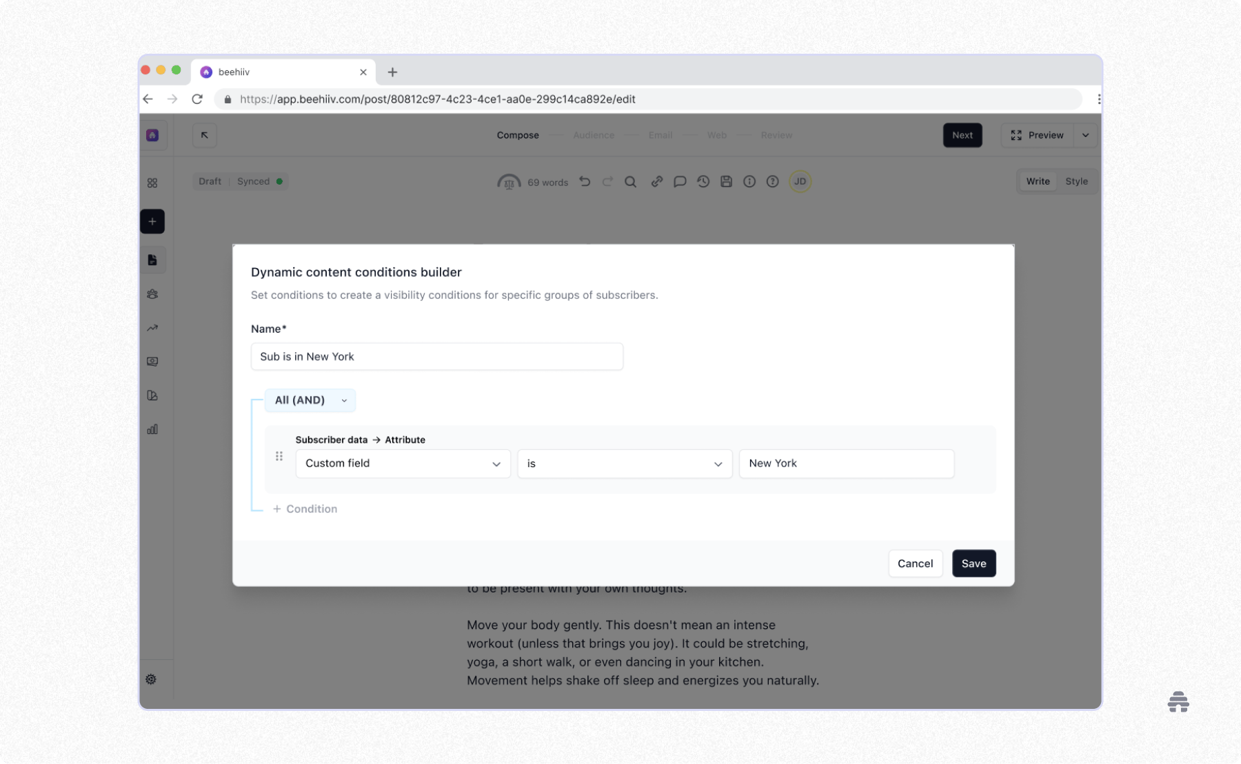 What’s unique about beehiiv’s approach is that it makes personalization accessible to any writer — no code, no external automation tools.