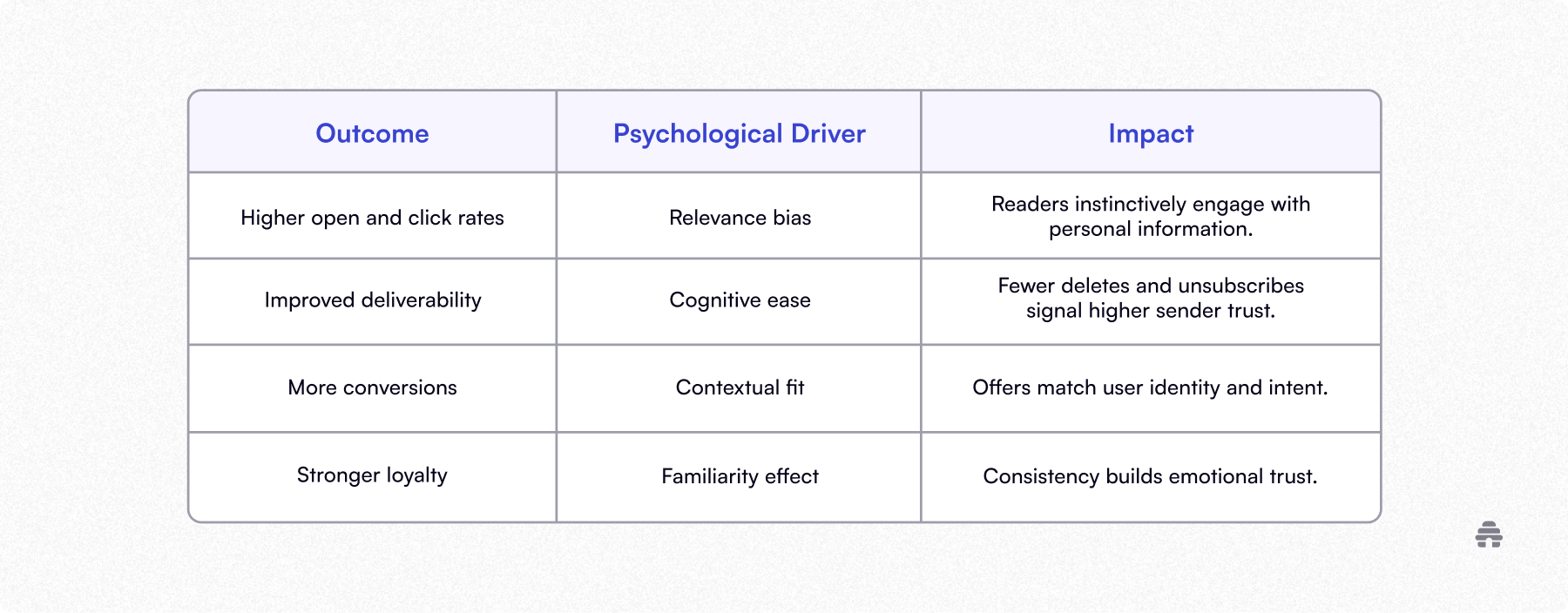 In short, personalization amplifies every metric that matters because it aligns with how people already process attention and belonging.